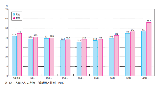 など、透析を長期間続けることによるダメージの蓄積によって、入院の割合は増えていきます。