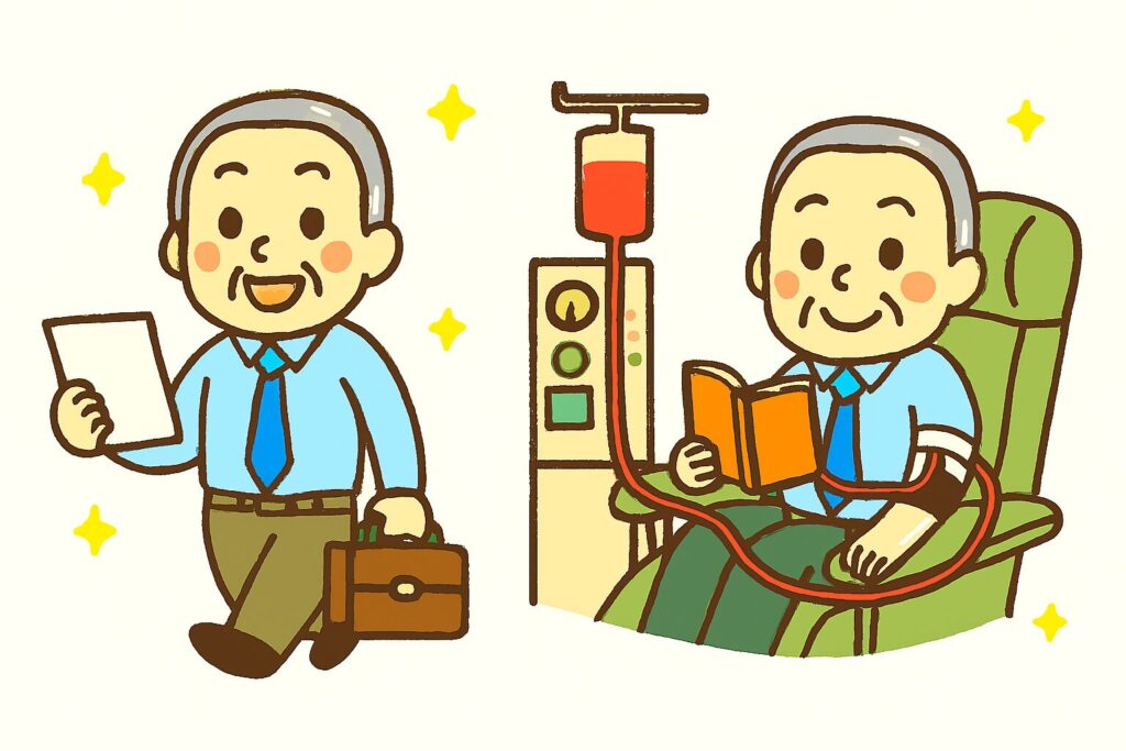 今は働き方改革の時代なので、仕事はなるべく無理せず、残業なしで帰って透析をしてください。