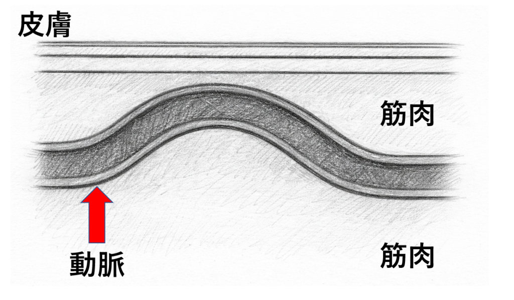• 手首とか首の動脈は触ると拍動しているのが分かる