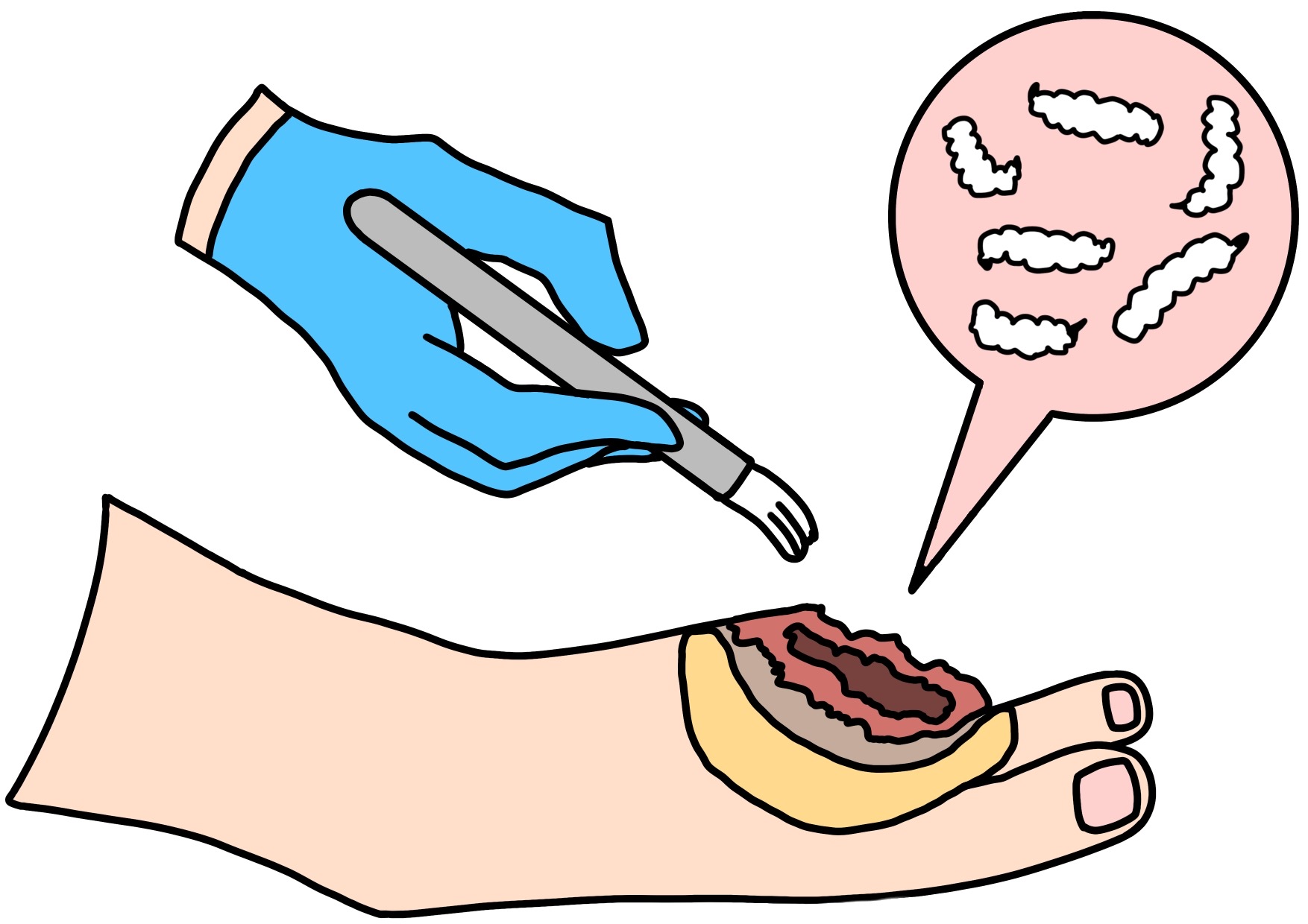 医療用のウジ虫に足の潰瘍を治してもらう治療方法です。