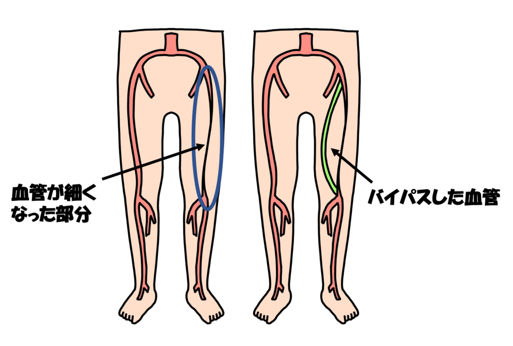 詰まってしまった部位の上下に血管をつないで、新たに血管の通り道を作る方法です。