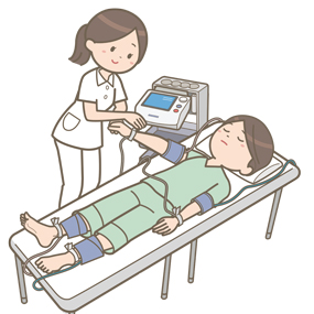 ABIは、足首と上腕の血圧を測定して、その差を比べる検査です。
